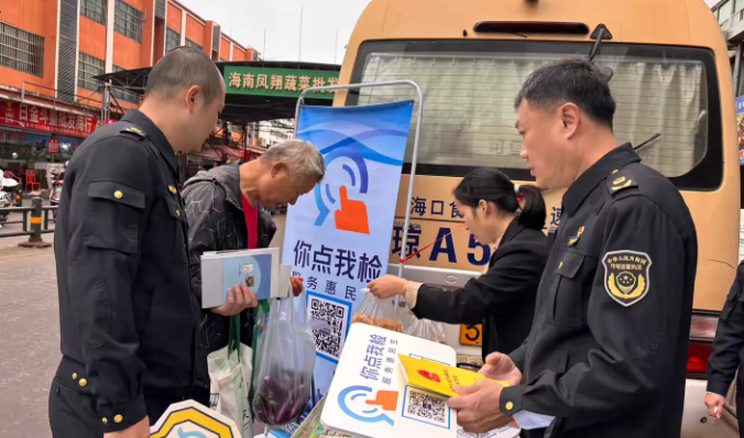 勾当现场,琼山工做人员向市平易近发放食物平安材料、反食物华侈折页,自动取过往市平易近、倾听群众对食物平安的关心,并指导大师通过扫码参取“你点我检”线上平台,便利市平易近随时反馈关心的食物品类及检测需求。
